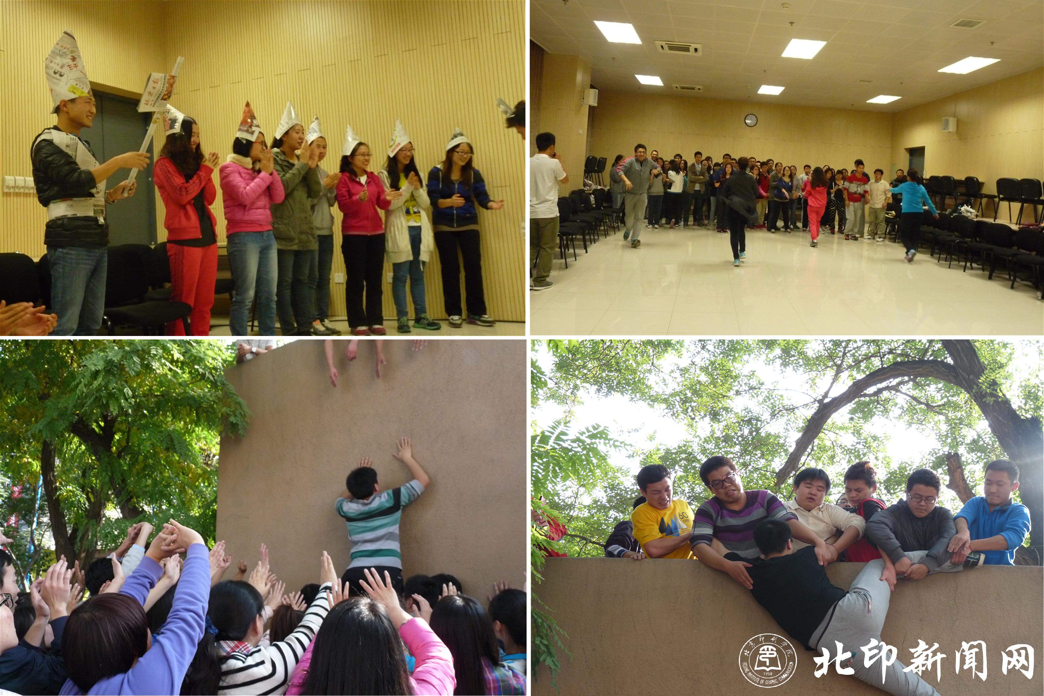 “求生墙”活动突显学生团结协作精神(左下),“求生墙”活动(右下)
