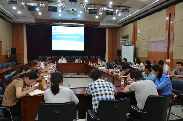 王新营就学生思想教育、党建教育、心理教育及日常管理工作进行了部署,赵元介绍了今年学生就业有关情况并作出工作部署,王晓林对研工部基本工作和重点工作进行了详细部署,李柴非从思想引领、配合提升学风、精简合并活动等角度介绍了共青团秋季学期工作安排。