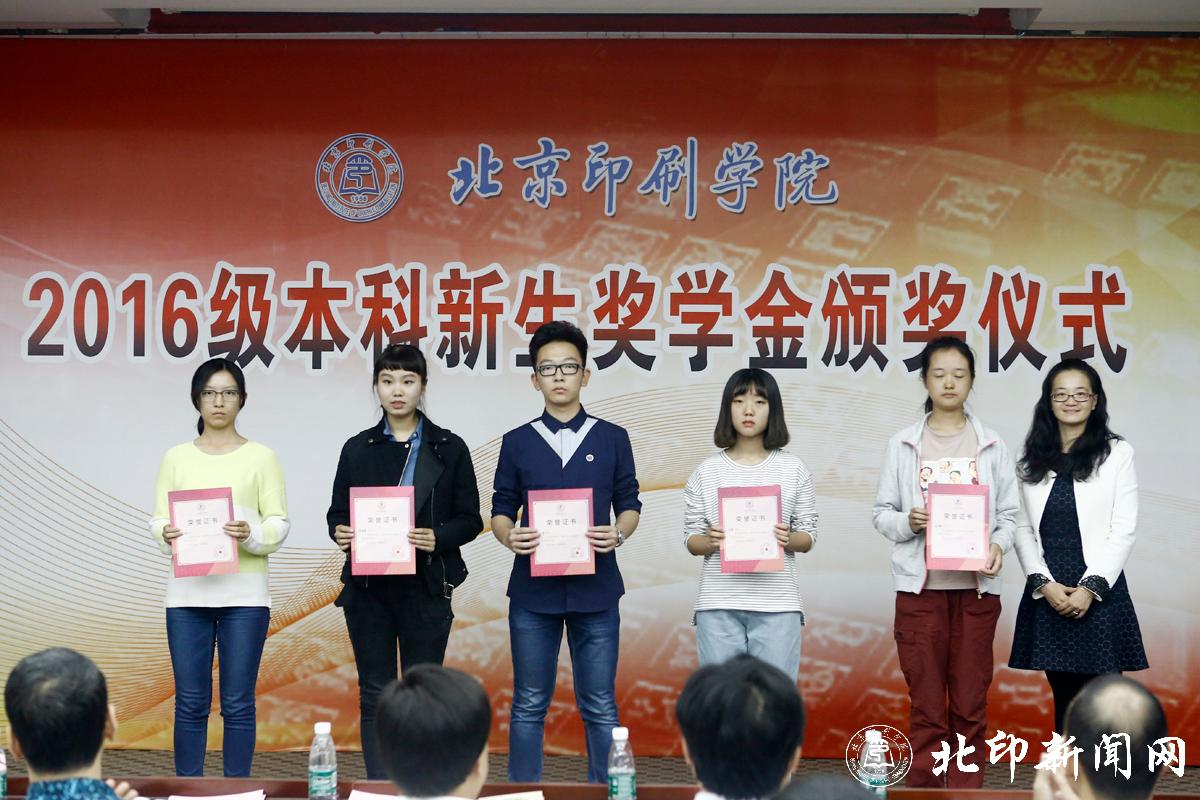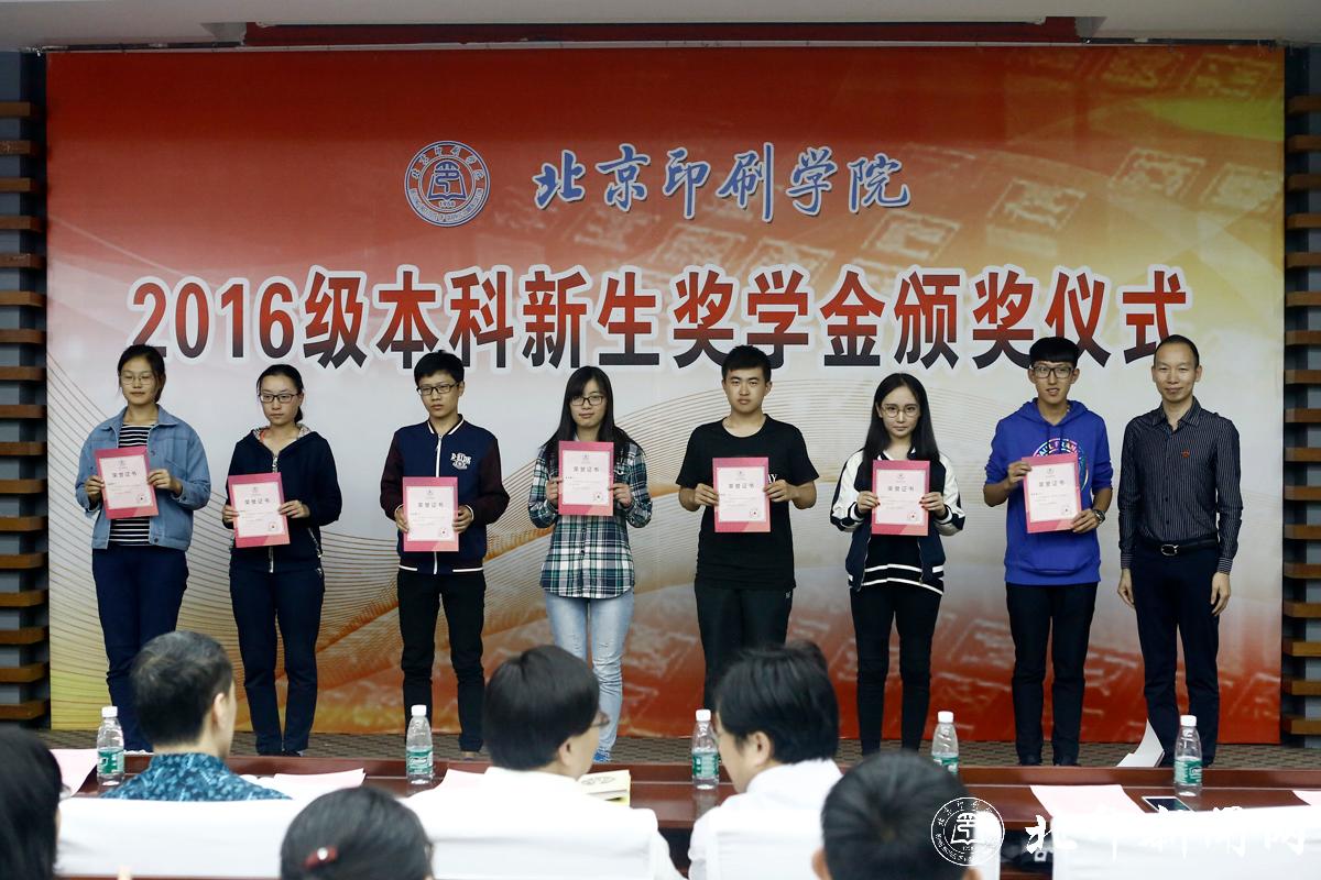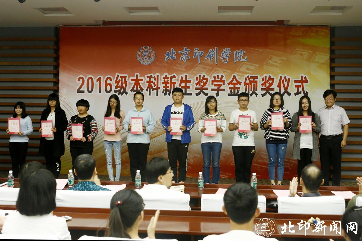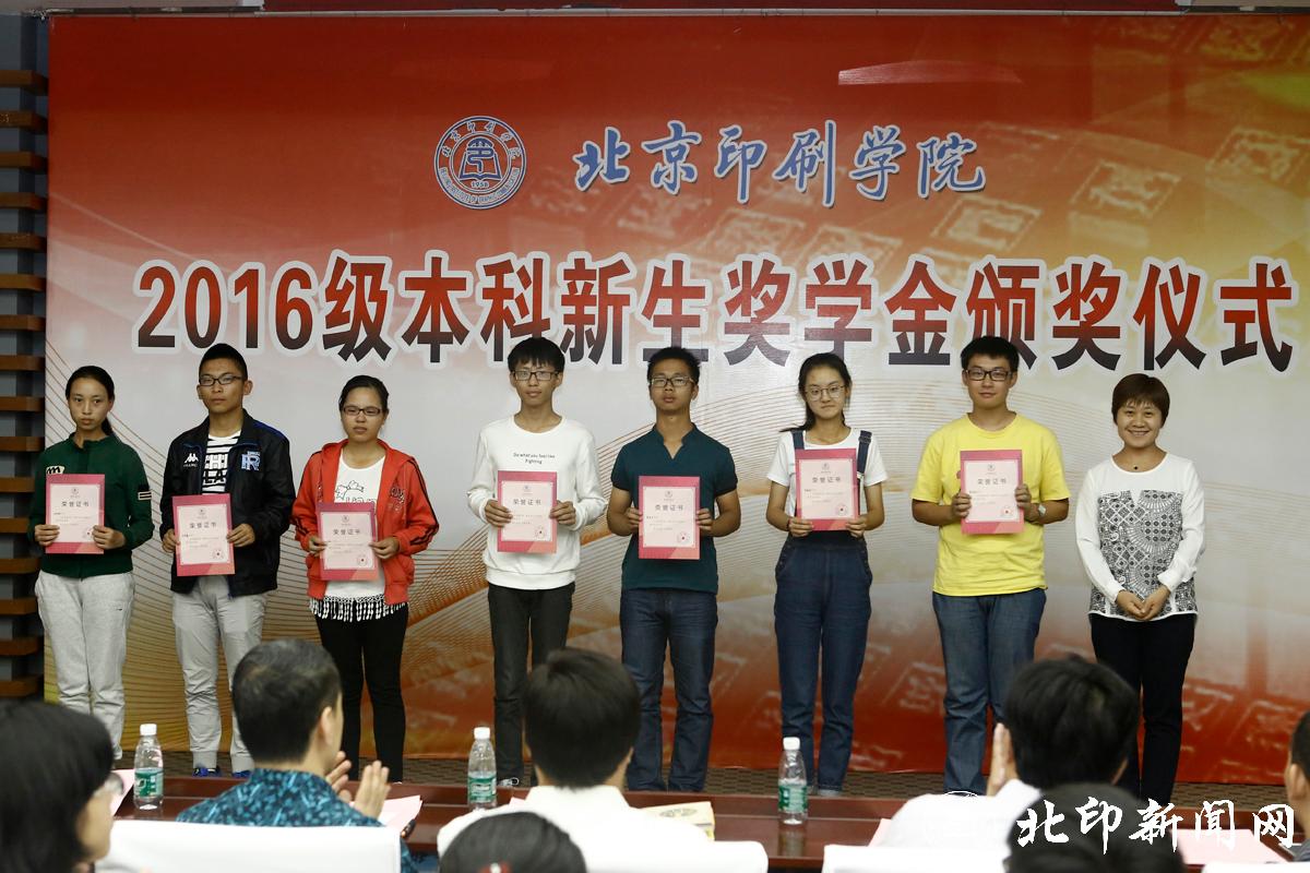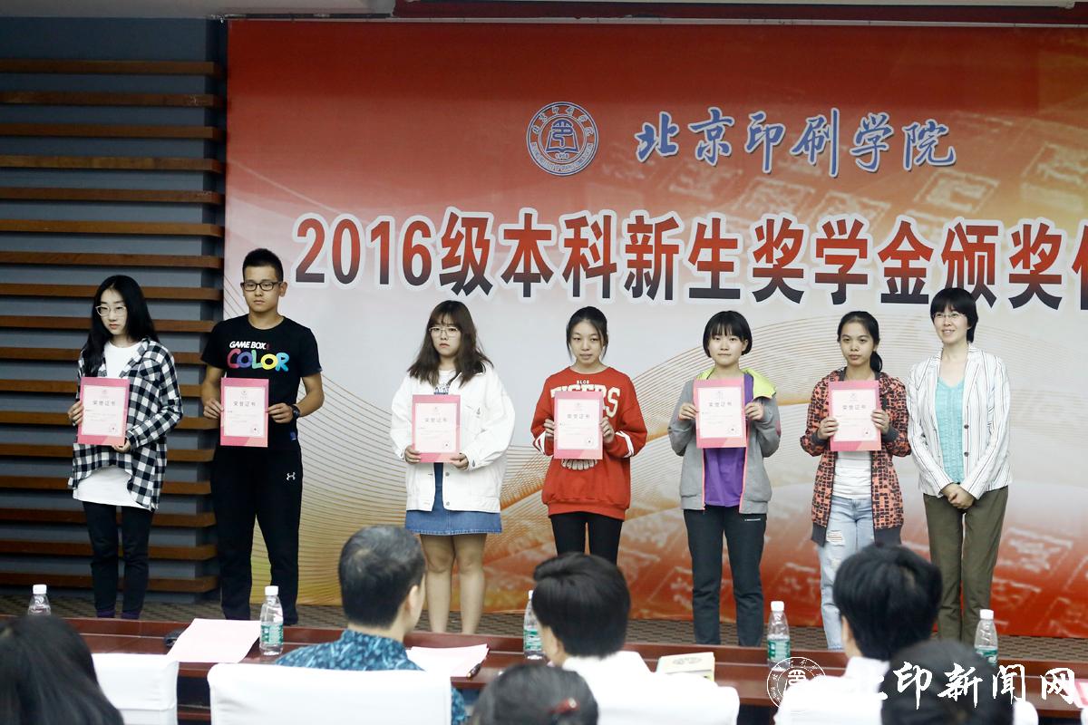 教务处处长李子臣介绍了本科生新生奖学金评选情况。田忠利宣读了2016级新生奖学金获奖名单。2016年,共有42名本科新生荣获北京印刷学院特等奖学金;69名本科新生荣获北京印刷学院优秀奖学金。印刷与包装工程学院副书记杨柯、机电工程学院副书记姜福强、信息工程学院副书记胡婷、新闻出版学院院长魏超、经济管理学院副书记赵欣、设计艺术学院副书记张琳和新媒体学院书记叶霞分别为各学院荣获新生奖学金优秀奖的同学颁奖。