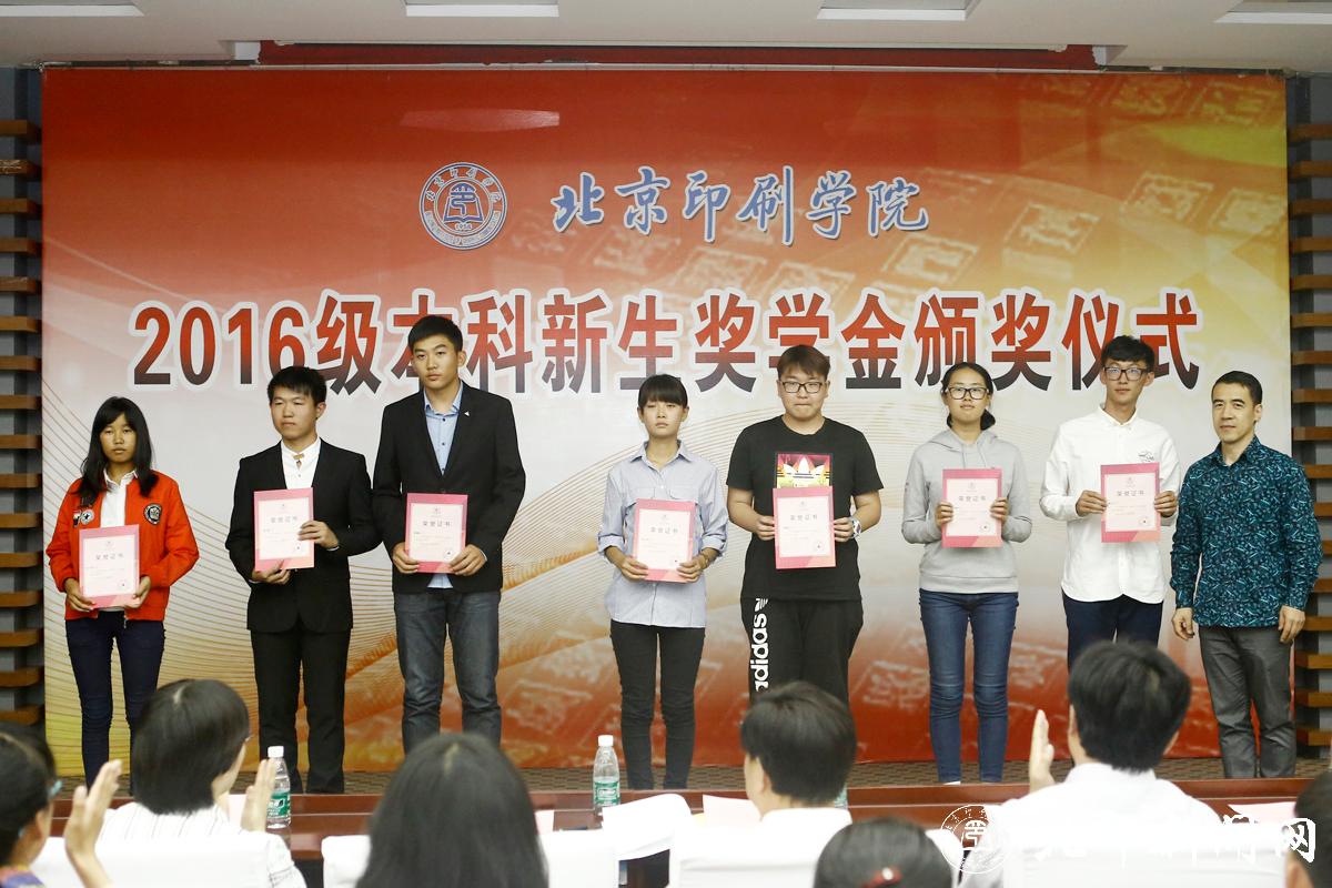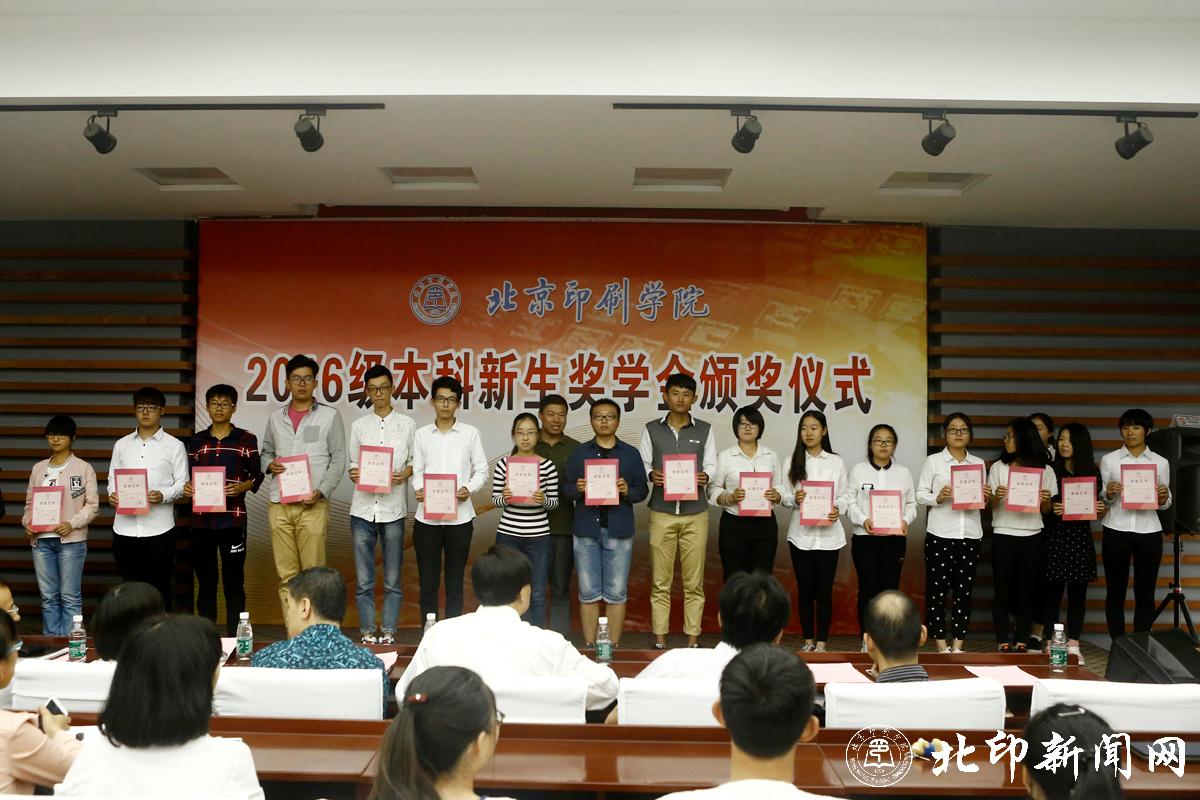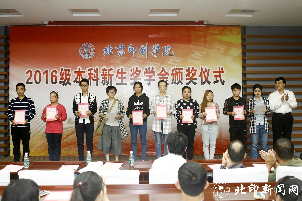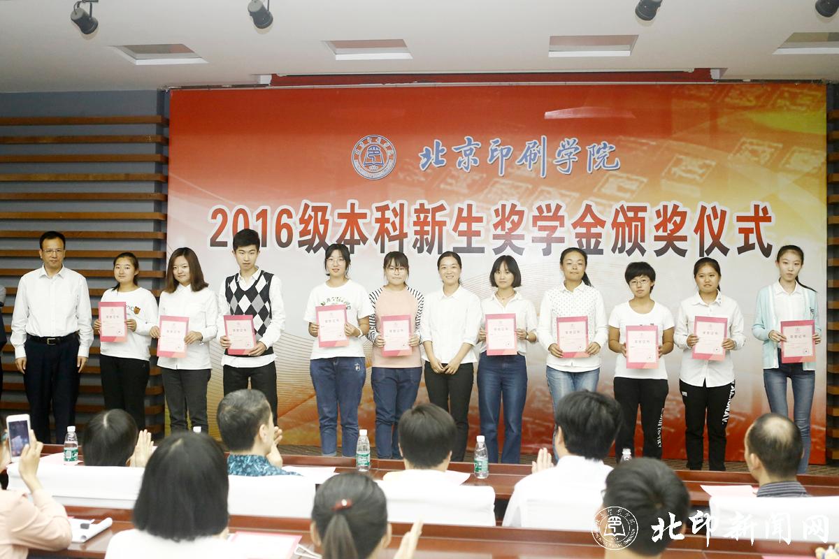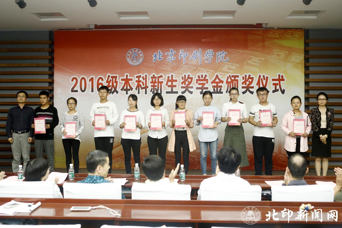 教务处处长李子臣介绍了本科生新生奖学金评选情况。田忠利宣读了2016级新生奖学金获奖名单。2016年,共有42名本科新生荣获北京印刷学院特等奖学金;69名本科新生荣获北京印刷学院优秀奖学金。印刷与包装工程学院副书记杨柯、机电工程学院副书记姜福强、信息工程学院副书记胡婷、新闻出版学院院长魏超、经济管理学院副书记赵欣、设计艺术学院副书记张琳和新媒体学院书记叶霞分别为各学院荣获新生奖学金优秀奖的同学颁奖。