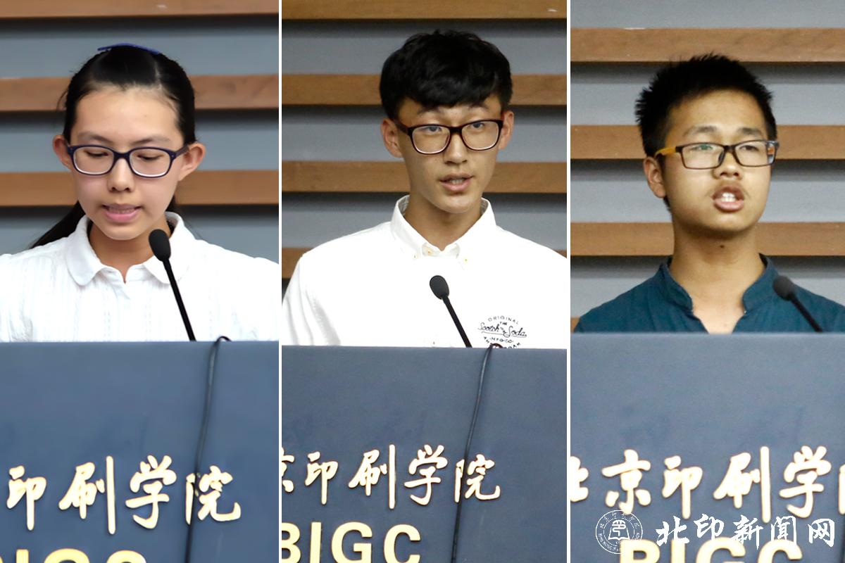 三位新生奖学金的获奖代表发言。印刷与包装工程学院的丁月恒同学代表获奖学生向学校表达了感谢,分享了从迈入北印到上课两周的感触,她认为大学是学习知识的地方,更是锻炼能力的舞台,表示将在北印的陪伴与鞭策下继续前进。