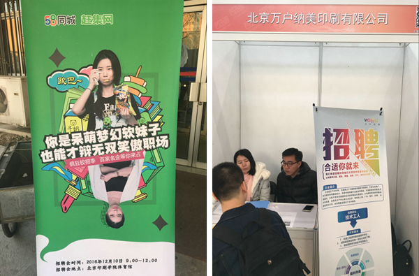 为促进毕业生找工作的积极性,吸引更多的毕业生参会,主办方也设计了幽默生动的海报、微信。段子手式的网络语言和互联网化的素材吸引了更多的毕业生关注本次招聘会。