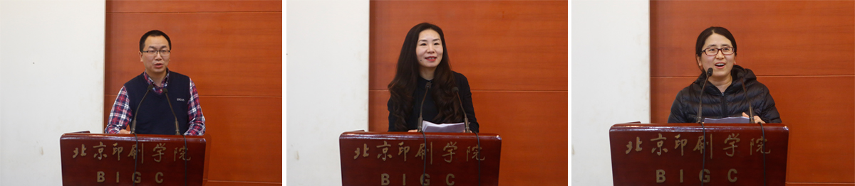 优秀辅导员代表丁伟芳(左),优秀班主任代表郭瑾(中)、张颖(右)宣讲